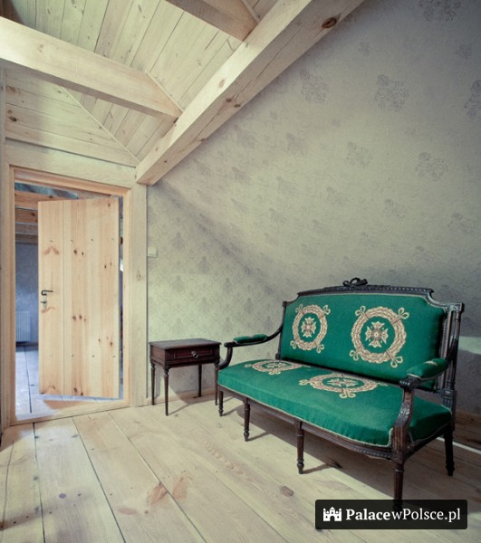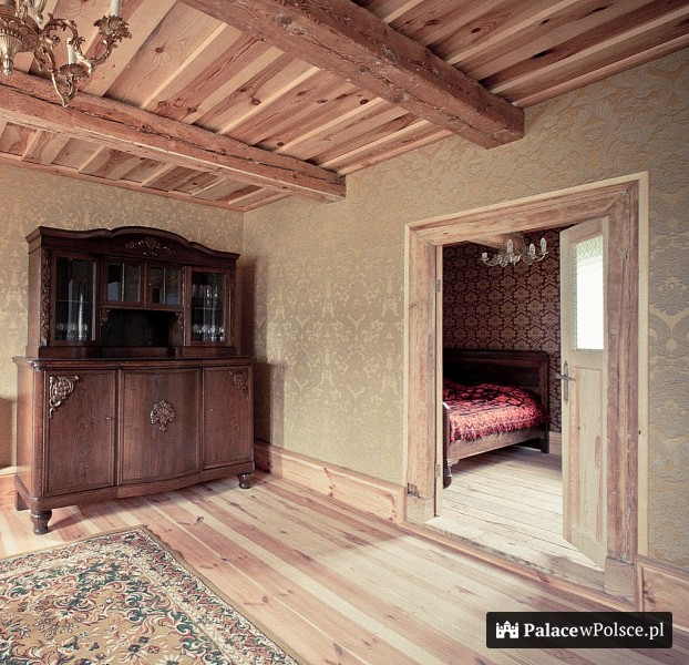 Po przekroczeniu progu daje się odczuć przyjemny orzeźwiający zapach starego drewna, a ceglana podłoga w połączeniu z wiekowymi belkami i sufitem zapewniają niepowtarzalny klimat. Wyposażona w pełni w zdobycze cywilizacji kuchnia, zachęca jednak do skorzystania z kuchni kaflowej, pieca chlebowego czy kamiennej chłodnej piwnicy z łukowym stropem. Klasyczny kominek kaflowy w salonie doskonale ociepla atmosferę, a znajdujące się w zabytkowym kredensie szkła zachęcają do skosztowania wytwarzanej w gospodarstwie na bazie własnych ekologicznych owoców tradycyjnej nalewki malinowej.