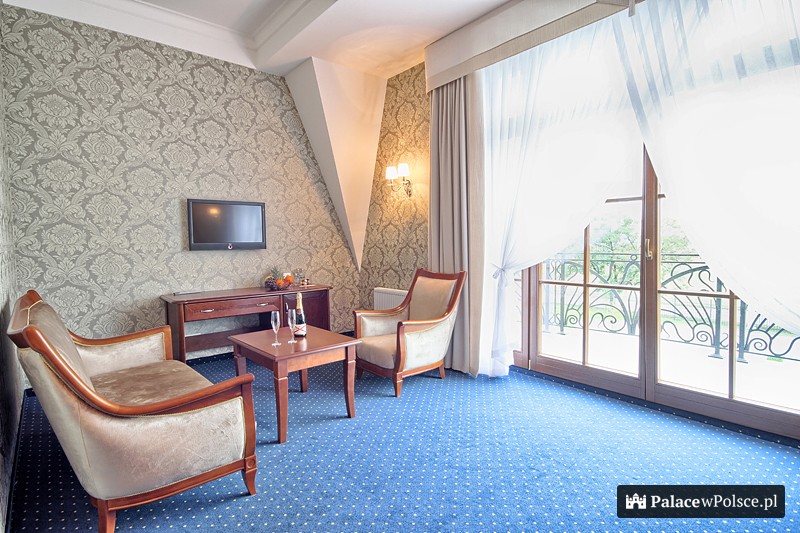 Zadbaliśmy też o to, by pokoje różniły się między sobą wyglądem, kolorystyką i elementami dekoracyjnymi. Miłośników dawnego polskiego stylu z pewnością zadowolą meble z epoki – rzeźbione drewniane łóżka, ciemne szafy. Każdy pokój wyposażony jest m. in. w przestronną łazienkę z prysznicem, telewizor, lodówkę, telefon, wygodne biurko do pracy i bezpłatny dostęp do internetu.