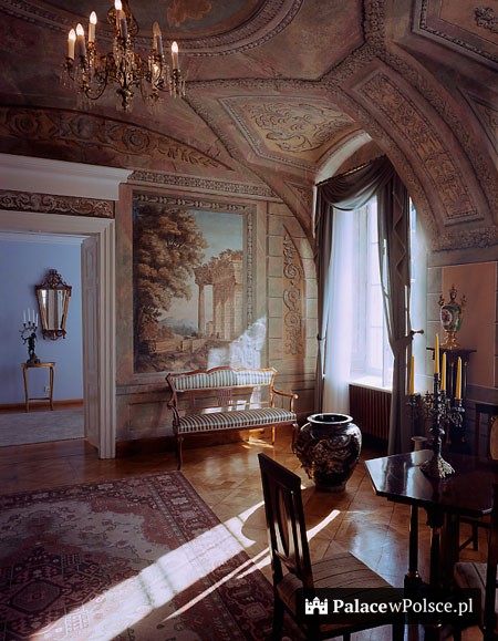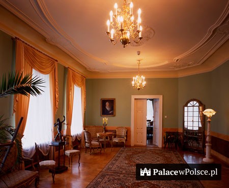 Salon Ogrodowy jest usytuowany w części zachodniej pałacu i posiada wspaniałe walory widokowe dające spojrzenie na park angielski.