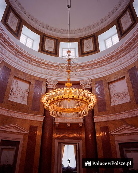 Sala Rotundowa znajdująca się w centrum pałacu, również na podwyższonym parterze posiada doskonałe warunki akustyczne, stąd też jest szczególnie predysponowanym miejscem do organizacji konferencji i koncertów. Unikatowa sztukateria, stiukowe wyłożenia ścian oraz artystycznie intrasowana podłoga sprawiają, że jest to najbardziej reprezentacyjne miejsce w całym zespole pałacowym. Polecamy zadysponować tą sale na specjalne spotkania. Może także zostać zaadaptowana jako sala do pracy w grupie szkoleniowej.