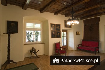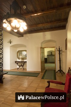 Goście mogą skorzystać z bazy hotelowej zlokalizowanej w "Domu pod Kogutkiem", mieszczącym się nieopodal zamku. Jest to budynek postawiony w 1915 roku w stylu neogotyckim z okrągłą wieżą, na szczycie której umieszczono blaszany wiatrowskaz w kształcie koguta. Renesansowo - klasycystyczny zamek oraz neogotycki "Dom pod Kogutkiem" zlokalizowane są w pięknym parku utrzymanym w stylu angielskim. W Domu pod Kogutkiem znajduje sie jadalnia oraz nowoczesna kuchnia. W zamku jest wydzielony pokój, w którym można spożywać posiłki. Zamek otacza rozległy park z rzadkimi gatunkami drzew